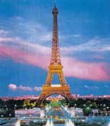 位于法國巴黎市中心塞納河左岸的戰神校場上,是1884年法國政府為慶祝1789年法國資產階級大革命一百周年,舉辦世界博覽會而建立起來的永久性紀念物。法國著名工程師居斯塔夫·埃菲尓設計的鐵塔方案在700多個競賽方案中脫穎而出,被評委會選中。該塔落成后便以設計者的名字命名為埃菲尓鐵塔。鐵塔占地12.5公頃,高320.7米,重約7000噸,由18038個優質鋼鐵部件和250萬個鉚釘鉚接而成。底部有4個腿向外撐開,在地面上形成邊長為100米的正方形,塔腿分別由石砌礅座支承,地下有混凝土基礎。在塔身距地面57米、115和276米處分別設有平臺,距地300米處的第4座平臺為一氣象站。自底部至塔頂的步梯共1711級踏步,另有4部升降機(以蒸汽為動力,后改為可容50-100人的寬大電梯)通向各層平臺。1959年頂部增設廣播天線,塔增高到320米。埃菲爾鐵塔于1887年11月26日動工,1889年3月31日竣工,歷時21個月。1889年以前,人類所造的建筑物的高度從來沒有達到 200米,埃菲爾鐵塔把人工建造物的高度一舉推進到300米,是近代建筑工程史上的一項重大成就。它表明了19世紀后期結構科學和施工技術的長足進步。鐵塔的出現預示著采用金屬結構將會大大增加建筑的高度。鐵塔建成時有許多人認為它破壞了巴黎的城市天際線而表示反對,但現在埃菲爾鐵塔的宏偉形象已經成為巴黎的象征。今天,埃菲爾鐵塔的宏偉形象已成為巴黎的象征。