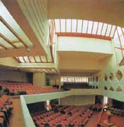 但在建筑藝術范圍內,賴特確有其獨特的方面,他比別人更早地解決了盒子式的建筑。他的建筑空間靈活多樣,既有內外空間的交融流通,同時又具備有安靜隱蔽的特色。他既運用新材料和新結構,又始終重視和發揮傳統建筑材料的優點,并善于把兩者結合起來。同自然環境的緊密配合則是他的建筑作品的最大特色。賴特的建筑使人覺著親切而有深度,不象勒.柯布西耶那樣嚴峻而乘張。