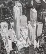 美國洛克菲勒財團投資建造的大型商業娛樂和辦公建筑群,在紐約曼哈頓島中部,占地8.9公頃,共有建筑19座,建于1931~1940年。設計單位包括三個建筑師事務所,主要設計人有R.胡德、H.W.科比特、W.K.哈里森等。