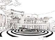新奧爾良是美國南方城市。1973年,市政當局決定在該市意商居民集中的地區(qū)建造意大利廣場。意大利廣場中心部分開敞,一側有祭臺,祭臺兩側有數(shù)條弧形的由柱子與檐部組成的單片“柱廊”,前后錯落,高低不等。這些“柱廊”上的柱子分別采用不同的羅馬柱式,祭臺帶有拱券,下部臺階呈不規(guī)則形,前面有一片淺水池,池中是石塊組成的意大利地圖模型,長約24米。新奧爾良市的意裔居民多源自西西里島,整個廣場就以地圖模型中的西西里島為中心。廣場鋪地材料組成一圈圈的同心圓,即以西西里島為中心。廣場有兩條通路與大街連接,一個進口處有拱門,另一處為涼亭,都與古代羅馬建筑相似。廣場場上的這些建筑形象明確無誤地表明它是意大利建筑文化的延續(xù)。
