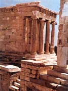 雅典衛(wèi)城中還有伊瑞克提翁神廟,(以著名的女像柱廊聞名于世),和勝利神廟。