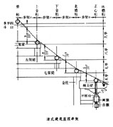 主要用于北方官式建筑中。為保證雨雪的排泄,規定各種大小建筑的檐步架都是五舉(即步架舉高和步架長度之比等于5:10),飛椽為三五舉,其余各步架之間的舉高,取決于房屋的大小和檁數的多少。 城樓或亭子的脊步架,其坡度需酌情增陡,可達九五舉乃至十舉以上。