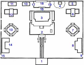 1-坤寧門 2-天一門 3-欽安殿 4-御景亭 5-擒藻堂 6-浮碧亭 7-萬春亭 8-絳雪軒 9-瓊苑東門 10-延輝閣 11-位育齋 12-澄瑞亭 13-千秋亭 14-養(yǎng)性齋 15-瓊苑西門 16-承光門 17-集福門 18-順貞門 19-延和門