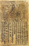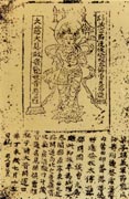 五代時期,佛教有了一定的發(fā)展,在一些割據(jù)的國家,由于統(tǒng)治者的特別提倡,佛教非常興盛。據(jù)記載,后周顯德二年(公元955年)時,有寺院二千九百六十四所,僧尼六萬一千二百人,說明當(dāng)時佛教的規(guī)模是很大的。而當(dāng)時的佛像佛經(jīng)印刷,也遍及南北各地,流傳下來的五代佛教印刷品也較其他印刷品多。在敦煌石室,發(fā)現(xiàn)了以下幾件五代印刷品。
