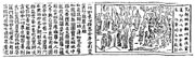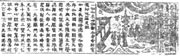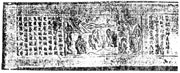 1924年杭州雷峰塔倒塌,在有孔的塔磚內(nèi)再次發(fā)現(xiàn)《寶篋印經(jīng)》。經(jīng)卷有題記“天下兵馬大元帥吳越國王造此經(jīng)八萬四千卷,舍入西關(guān)磚塔,永充供養(yǎng)。乙亥八月日記”。乙亥是宋太宗開寶八年(975年)。同時還發(fā)現(xiàn)了藏在磚塔內(nèi)的塔圖印本。塔圖全長1米,每層畫一塔,四塔連接,畫有佛經(jīng)故事。記文中有丙子記年,為宋太宗太平興國元年(976年)。圖經(jīng)刻印比佛經(jīng)晚一年。論時代已入宋朝,其時吳越國并未納土,仍應(yīng)列為五代時期的印刷品。