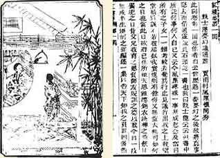 清代還創(chuàng)造了很多名著小說,如《紅樓夢》、《聊齋志異》、《儒林外史》、《鏡花緣》等,這些小說刻印時都附有插圖。道光年間的王希廉評本《紅樓夢》插圖六十四幅,人物形象,花草禽鳥,筆畫比較簡潔,神態(tài)自然。